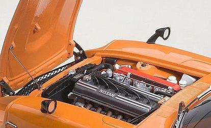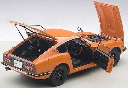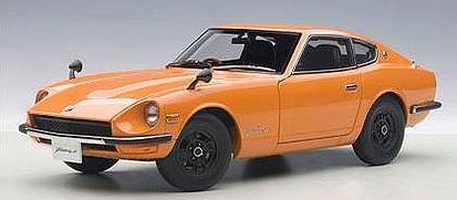 メーカー名:オートアート スケール:1/18S30型・初代『日産 フェアレディ Z』は、軽量モノコックボディに四輪独立懸架を採用し、ヨーロッパ製高級GTに匹敵するスペックと魅力溢れるロングノーズ&ショートデッキのクーペスタイルで1969年にデビュー。 「日産」および「ダットサン」ブランドの強力なイメージリーダーとなるべく開発されました。 スポーツカーながら乗用車並みの乗り心地と実用性を持ち、さらに比較的安い価格設定もあり北米市場を中心に爆発的に大ヒット。 その後10年もの長期に渡って生産され、世界総販売台数55万台という、当時のスポーツカーとしては空前の記録を樹立しました。 アメリカでは「Z-car(ズィーカー)」などの愛称で親しまれ、今なお高い人気を誇っています。 また、そのポテンシャルの高さを活かし多くのレースやラリーでも活躍しました。オートアートでは、最高出力160ps、最高速度は210km/hを誇る高性能グレード、『フェアレディ Z432』(PS30型)をモデル化しました。 「スカイライン GT-R」にも搭載され、プロトタイプレーシングカー「R380」のレーシングエンジンをベースとする、S20型・2リッター水冷直列6気筒DOHCエンジンを搭載。 車名の『Z432』は、その構造である「4バルブ・3キャブレター・2カムシャフト」に由来しています。トタイプレーシングカー「R380」のレーシングエンジンをベースとする、S20型・2リッター水冷直列6気筒DOHCエンジンを搭載。車名の『Z432』は、その構造である「4バルブ・3キャブレター・2カムシャフト」に由来しています。