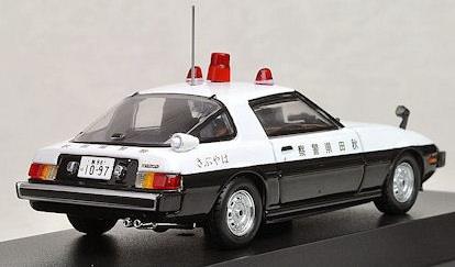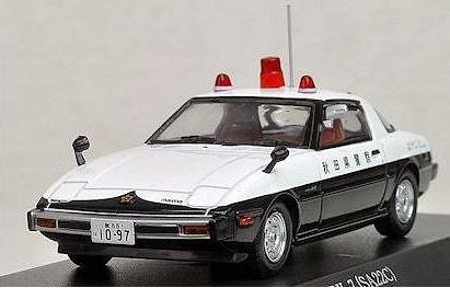 メーカー名:ヒコセブン スケール:1/43●ロータリーエンジン搭載の初代マツダRX-7(SA22C)。●そのパトロールカーが秋田県警察と島根県警察に存在しました。この車が発売された当時は高速道路の数や交通量が少なかったため各県ともに高速道路専用の"高速隊"は出来ておりませんでした。そのため高速道路の取締は交通機動隊が兼務していました。●歴代のRX-7はこの初台も含めすべて警察車両として採用されています。●配備先はその高い運動性能もあって、すべて高速隊や交通機動隊などの交通系です。RAI'Sでは歴代RX-7のパトロールカーはこれですべてリリースすることとなりました。●この車種は各県でかなり個性のある仕様となっています。秋田県警察ではリアにスピーカーを装備し、左右のリアフェンダーには"はやぶさ"の文字が入っています。●島根県警察に関してはゴールドのスポークホイールを装備しております。又、どちらの車両も赤色灯を3個を装備しています。