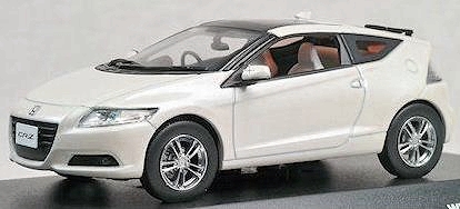 メーカー名:京商 スケール:1/43●「Compact Renaissance ZERO」の頭文字をとった「HONDA CR-Z」。●パワートレインは1.5L i-VTECエンジンとインテグレーテッド・モーター・アシストを組み合わせたホンダ独創のハイブリッドシステムを搭載し、ミッションタイプはCVTまたは6速MTが選択可能(ハイブリッドカーと6速MTの組み合わせは世界初)。●全車にドライブ・バイ・ワイヤ、モーター、トランスミッション、電動パワーステアリング、エアコン等を統合制御する事で、積極的に走りを楽しむSPORTモード、走りと燃費性能のバランスに優れたNORMALモード、実用燃費向上を図ったECONモードを、ボタン一つで簡単に切り替えられる3モードドライブシステムを採用。●また、10・15モード燃費値は25km/L(CVT車)、22.5km/L(6MT車)を達成し、全車で環境対応車普及促進税制に適合している。●環境負荷を抑えることを最優先にされるハイブリッドカーにおいても、運転する楽しさを感じることの出来るスポーツ性を融合させた車両である。