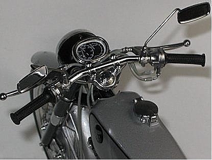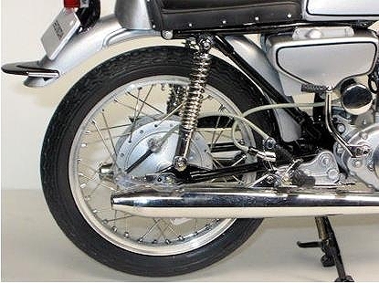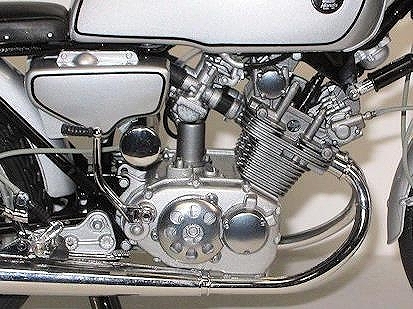 メーカー名:エブロ スケール:1/10 CR93 ベンリイ レーシングは1962年9月、鈴鹿サーキットの完成と第一回日本グランプリに 合わせ、またその3ケ月前にCR110と同時に発売された市販レーサーである。CR93はGPマシン並みの高性能でクラブマン向けに生産され,1962年イギリスのマン島TTレースで2台のRC145に次いでワークスマシンを尻目に堂々の3位入賞を果たした実績を残している。CR93は125ccでありながら、DOHC 2気筒で21.5ps、13500rpm、5速ミッションを持ち最高速135km/hを マークした。(カウリング装着では155km/h )CR93は1962年6月から生産が始まり、一説によると総生産台数252台とも言われているが、部品で組まれた 完成車もあり、また時代の進化と共に戦闘能力を失ったこの市販レーサーCR93はレースで酷使された末にスクラップ化された数も多く、正確な現存数は不明である。このCR93ストリートは保安部品を装備した公道仕様。現在ではマニアの間で垂涎の的となっている極めて稀少なモデルです。