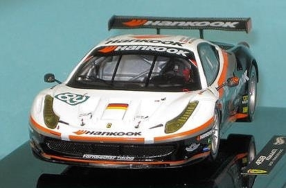 メーカー名:マテル スケール:1/43●Farnbacher RacingでエントリーしたFerrari 458 Italia GT2 No.89。ドライバーはドイツのDominik Farnbacher, デンマークのAllan Simonsen,マテルアメリカのLeh Keenで、プレテスト時にはGT2クラスの中では最速の車だった。Hankook-FarnbacherのFerrari F458 Italia GTは、Hankookを象徴する白、オレンジ、黒の配色。