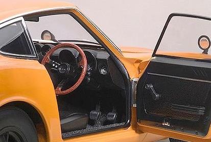 メーカー名:オートアート スケール:1/18S30型・初代『日産 フェアレディ Z』は、軽量モノコックボディに四輪独立懸架を採用し、ヨーロッパ製高級GTに匹敵するスペックと魅力溢れるロングノーズ&ショートデッキのクーペスタイルで1969年にデビュー。 「日産」および「ダットサン」ブランドの強力なイメージリーダーとなるべく開発されました。 スポーツカーながら乗用車並みの乗り心地と実用性を持ち、さらに比較的安い価格設定もあり北米市場を中心に爆発的に大ヒット。 その後10年もの長期に渡って生産され、世界総販売台数55万台という、当時のスポーツカーとしては空前の記録を樹立しました。 アメリカでは「Z-car(ズィーカー)」などの愛称で親しまれ、今なお高い人気を誇っています。 また、そのポテンシャルの高さを活かし多くのレースやラリーでも活躍しました。オートアートでは、最高出力160ps、最高速度は210km/hを誇る高性能グレード、『フェアレディ Z432』(PS30型)をモデル化しました。 「スカイライン GT-R」にも搭載され、プロトタイプレーシングカー「R380」のレーシングエンジンをベースとする、S20型・2リッター水冷直列6気筒DOHCエンジンを搭載。 車名の『Z432』は、その構造である「4バルブ・3キャブレター・2カムシャフト」に由来しています。トタイプレーシングカー「R380」のレーシングエンジンをベースとする、S20型・2リッター水冷直列6気筒DOHCエンジンを搭載。車名の『Z432』は、その構造である「4バルブ・3キャブレター・2カムシャフト」に由来しています。