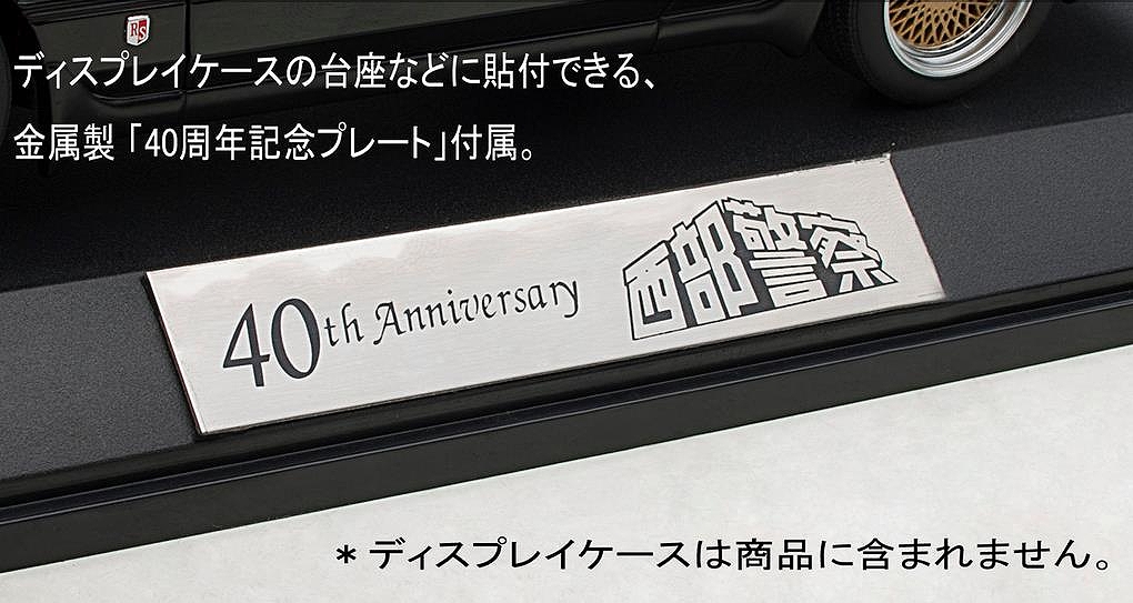※取り寄せ品です。限定の人気モデルですので、早めに手に入れてください。1979年10月の第一作テレビシリーズ放送開始から数えて2019年でちょうど40年、今なお絶大な人気を誇るアクション刑事ドラマ「西部警察」。劇中に登場したスーパー・パトカー「RS軍団」は、当時の最強モデル「日産 スカイライン(DR30)」をベースに最高時速250km/hオーバーにまで改造され、ドラマでの重要な役割を果たしその人気を支えました。今回多くのご要望にお応えし、オートアートの1/18スケールモデルとして2014年に発売後即完売となった「RS軍団」最速の『マシンRS-1』が約5年ぶりに登場。再モデル化にあたっては、新品番とし、再度入念な資料検証を行いモデル各部を改良、内外装のスペシャルパーツもよりリアルに再現しました。フル開閉モデルならではのギミックも存分にお楽しみ頂けます。さらに放送開始40周年を記念し、ディスプレイケース(別売)の台座に貼付したり、モデルと一緒に展示するとスペシャル感がアップする金属製の『40周年記念プレート』が付属します。
