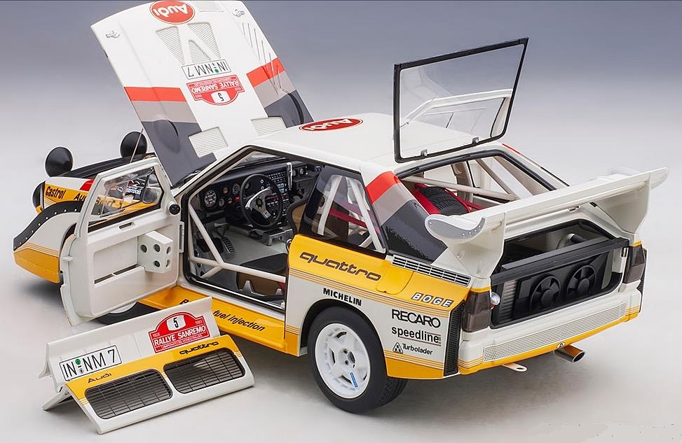 『パガーニ ウアイラ ロードスター』は、カーボンやチタンを使ったモノコックと軽量パーツをボディ各所に採用し、オープンモデルながらクーペより70kgも軽い車重1280kgを実現。764psを発揮するAMG製6リッターV12ツインターボエンジンを搭載し、0-100km/h加速3.1秒、最高速は360km/hを記録します。2017年のジュネーブショーで世界限定100台、2億7500万円での販売が発表された時には既に完売となっており話題を集めました。オートアートでは、細かなパーツに至るまで芸術的な美しさを追求する世界でも類を見ないスーパースポーツを余すところなくモデル化。アルミやカーボン素材を生かした美しいインテリアや複雑なエンジンルームの再現は要注目です。クーペとは異なる横開き式のドアと大きく開く前後カウル、前後計4枚の可変フラップは開閉可能。脱着可能なルーフとボディサイドに収まる専用バッグも付属します。