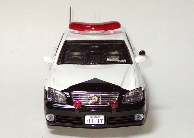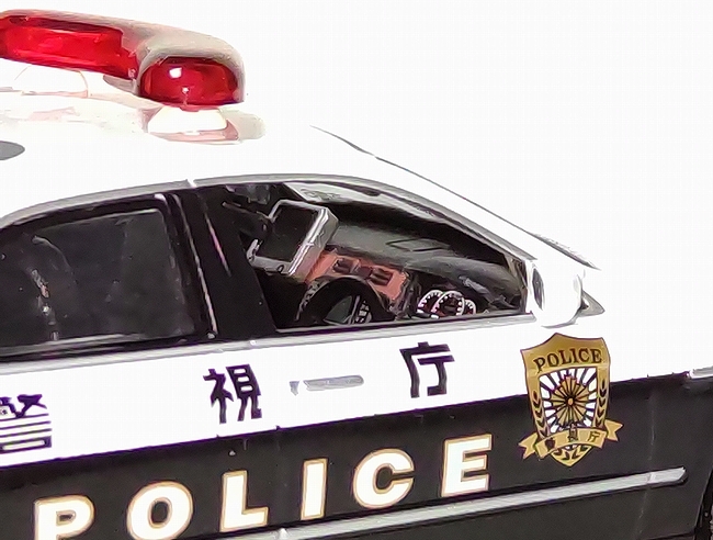 ●このゼロクラウンはトヨタのTRDがパトライトまで全てを一貫して製作しており新型の昇降機やマークX用のホイールキャップなど実車にこだわった作りとなっている。(ゼロクラウンには鉄ホールの設定は無いが、パトカーではマークXのホイールキャップを付けて履いている)※ゼロクラウンとはCMで使われたコピーで、正式名称ではありませんが、愛称として使われています。
